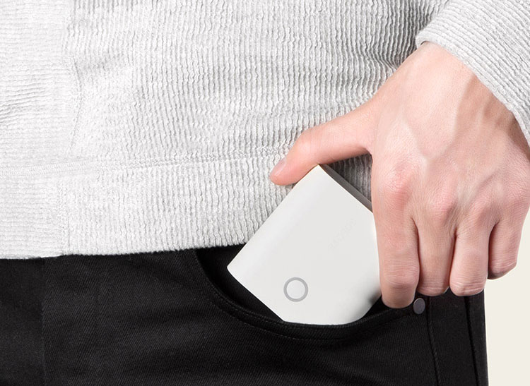 サイズは縦約72.5×幅約72×厚さ約32mmとポケットに入る大きさで、重さもiPhone Xとほぼ同じ175g。ポケットにも入るし、マルチタップに挿しても隣のコンセントを塞がないサイズ感です。