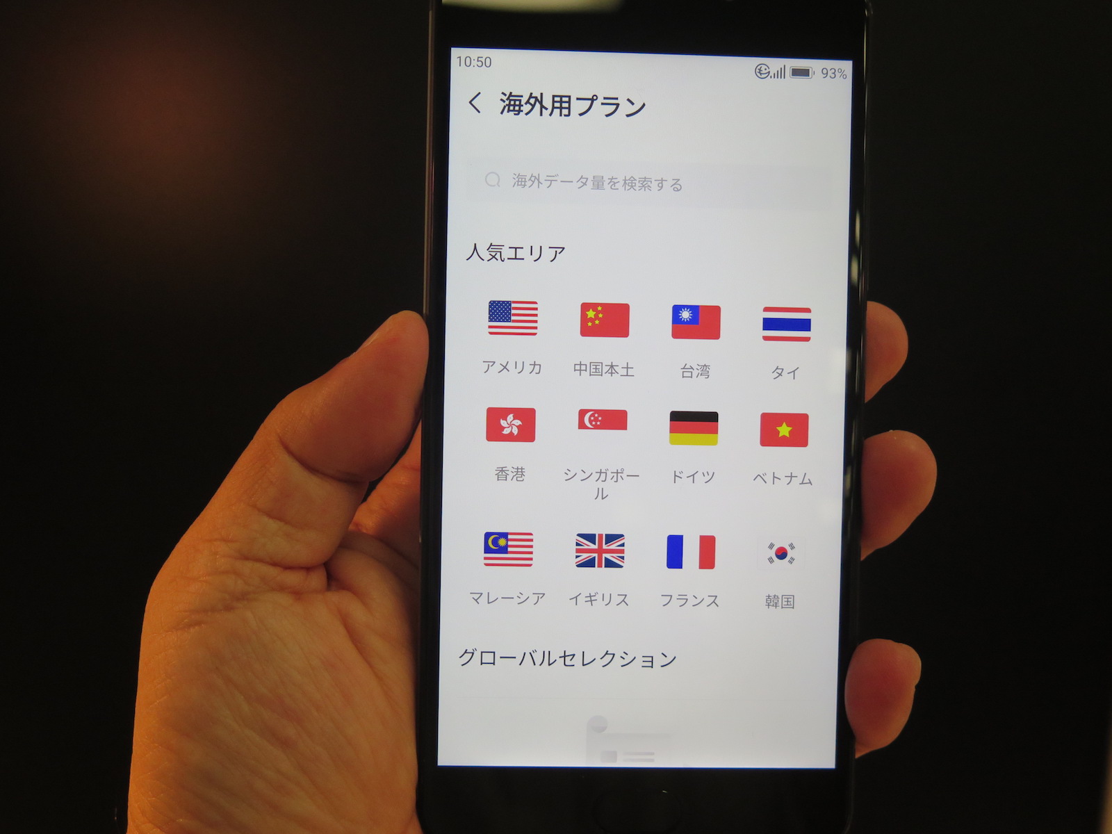 ▲アプリで渡航先を選んで、使いたいプランを購入できる