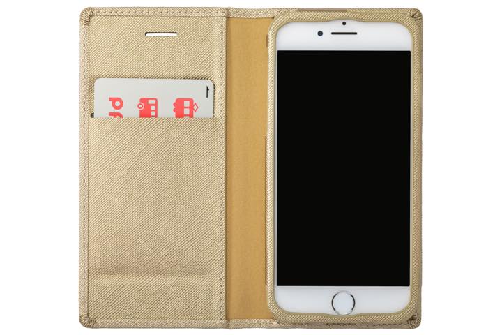 薄さ約15mmの「手帳型PUレザーケース」。フラップは内蔵のマグネットによりフレームに固定され、ベルトなどの余分な装飾を省いたデザインです。通話スピーカー用の穴が開いているため、フラップを閉じたままでも通話が可能です。内側には1枚いれても膨らまないICカードポケットが付いており、定期券等を入れられるので便利。 iPhone 8/7/6s/6対応。