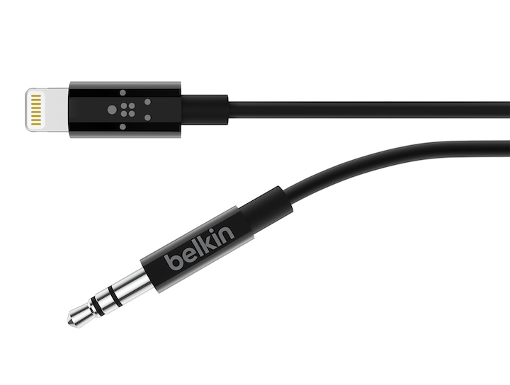 そんなときに使えるのがベルキンの「Lightning to 3.5mm オーディオケーブル」(2980円/税別~)。手持ちのiPhoneとオーディオのAUX端子をこのケーブル1本で簡単に接続できます。しかも、MFi認定製品なので、安心して使えますよ。