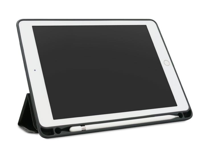 この、さらに使い勝手の良くなった新型iPadにぴったりなのが「iPad 9.7インチ専用 ペンホルダー付きSmart Folio Case(スマートフォリオ ケース)」(2580円/税別)。スタンドとして使えるのはもちろん、便利なApple Pencilホルダーつきなのがポイント。さらに、電池の発熱を抑えiPad本体のバッテリも長持ちさせる構造なのだとか。