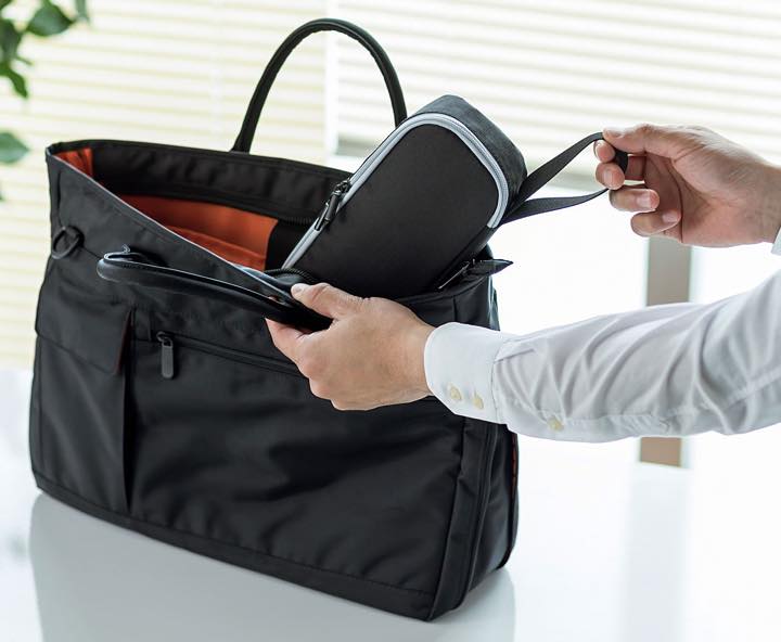 モバイルバッテリーやWi-Fiルーター、ACアダプタなどのスマホやノートPC用アクセサリー、ボールペンやハサミ、定規などの文房具類など、常備しておきたい小物をひとまとめ。乱雑になりやすいバッグの中も、これさえあれば簡単に整理整頓できます。