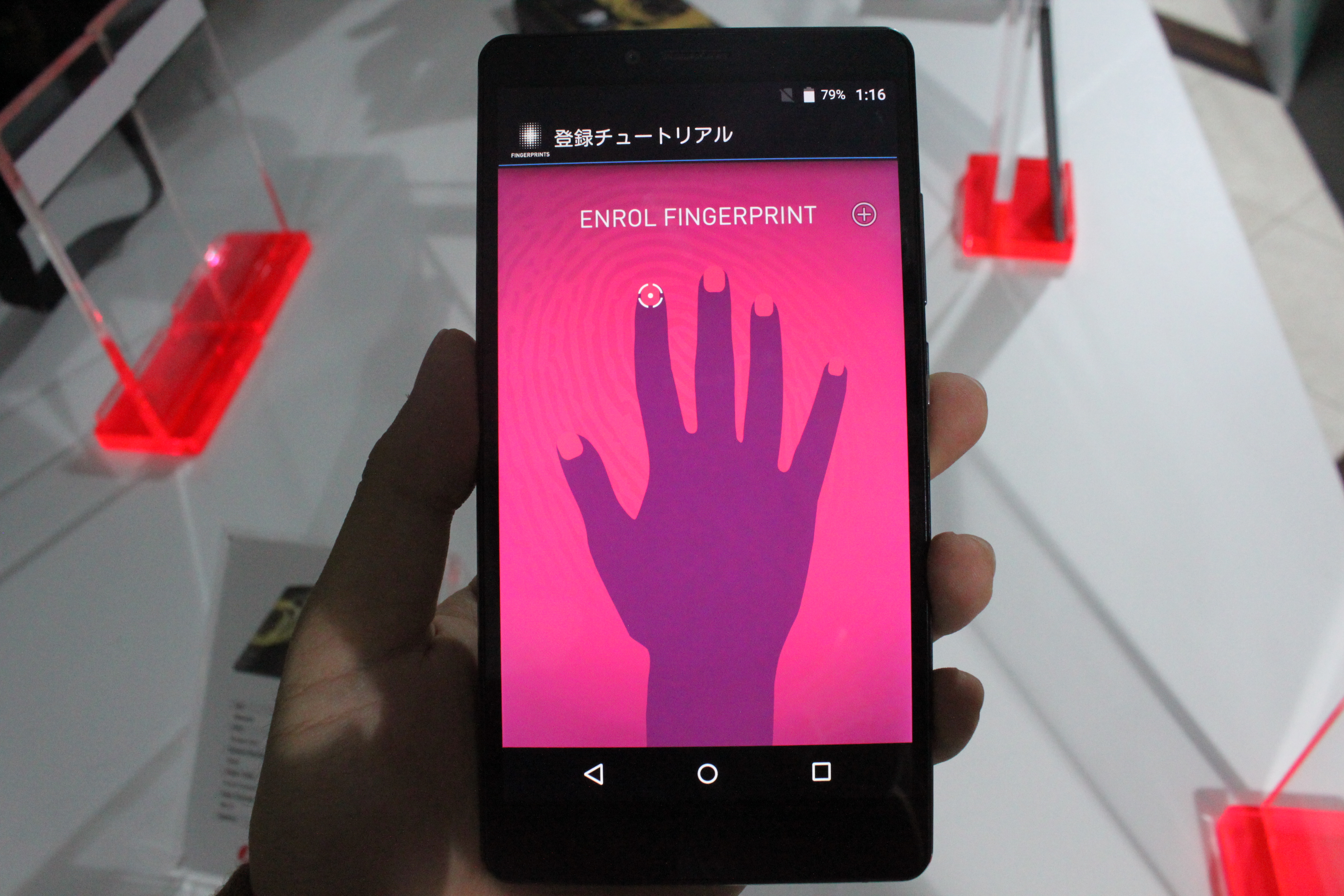 背面には指紋センサーを登載しています。設定メニューには認証で使用する指を登録する画面が