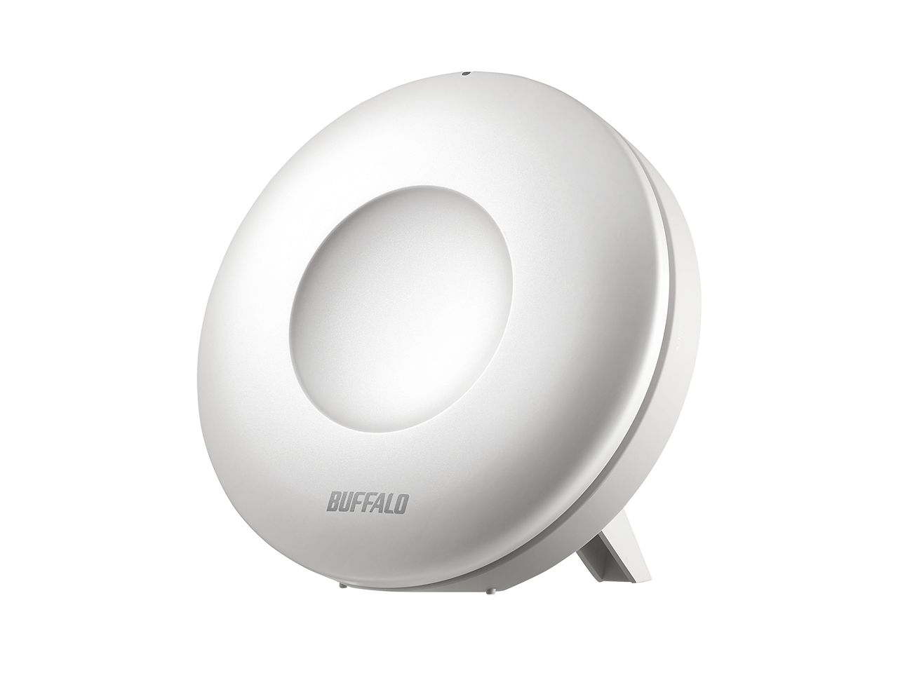 ▲親機のトライバンドWi-Fiルーター「WTR-M2133HP」は2万7700円(税別)。2.4GHz・5GHz(W52/W53)・5GHz(W56)の3つの周波数帯に対応。このパールホワイトグレージュのほかに、パールローズグレージュもある