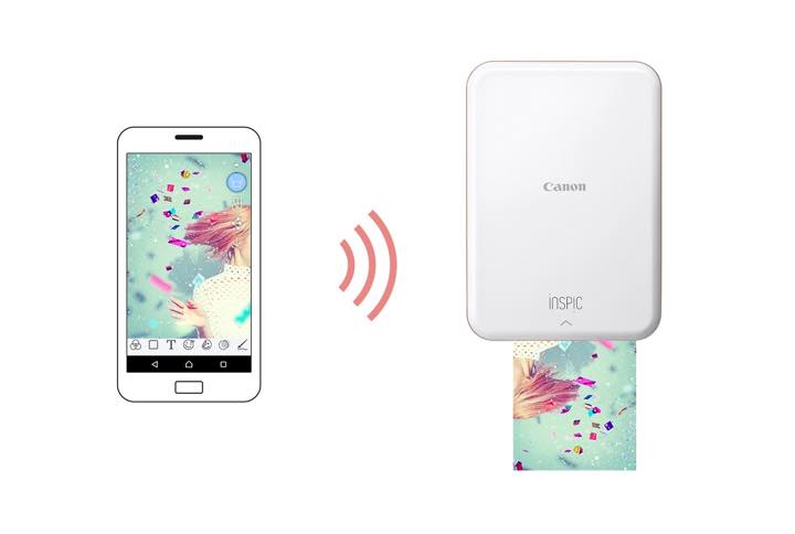 お気に入りショットを使ってもっと遊ぶなら、こんなプリンタはいかがでしょう。キヤノンから発売のミニフォトプリンター「iNSPiC PV-123」(店頭予想価格:1万7000円前後)は、スマホで撮った画像をその場で即プリントできるスマホ専用プリンターです。