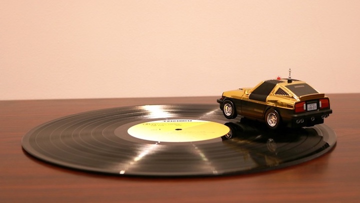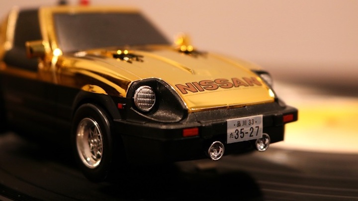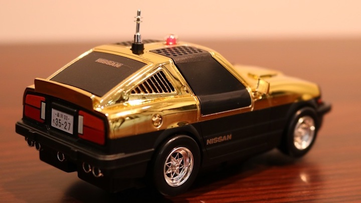 テイチクエンタテインメントが手がけた「レコードランナー SUPER Z」(3万2400円)は、金ピカ塗装に、ガルウィング、そして機銃まで装備したド派手なSUPER Zの勇姿を、レコード盤の上をクルクル走ることで音を再生するレコードランナーとして再現したもの。