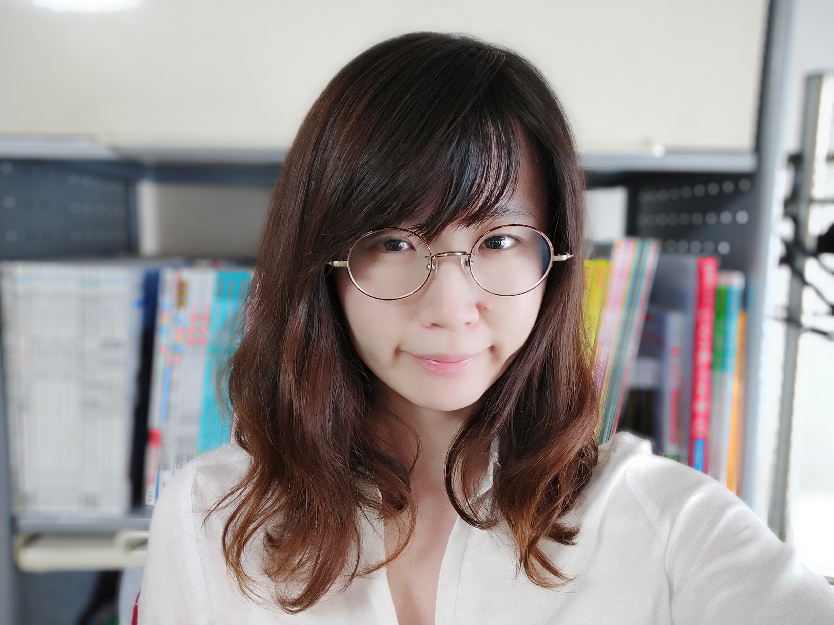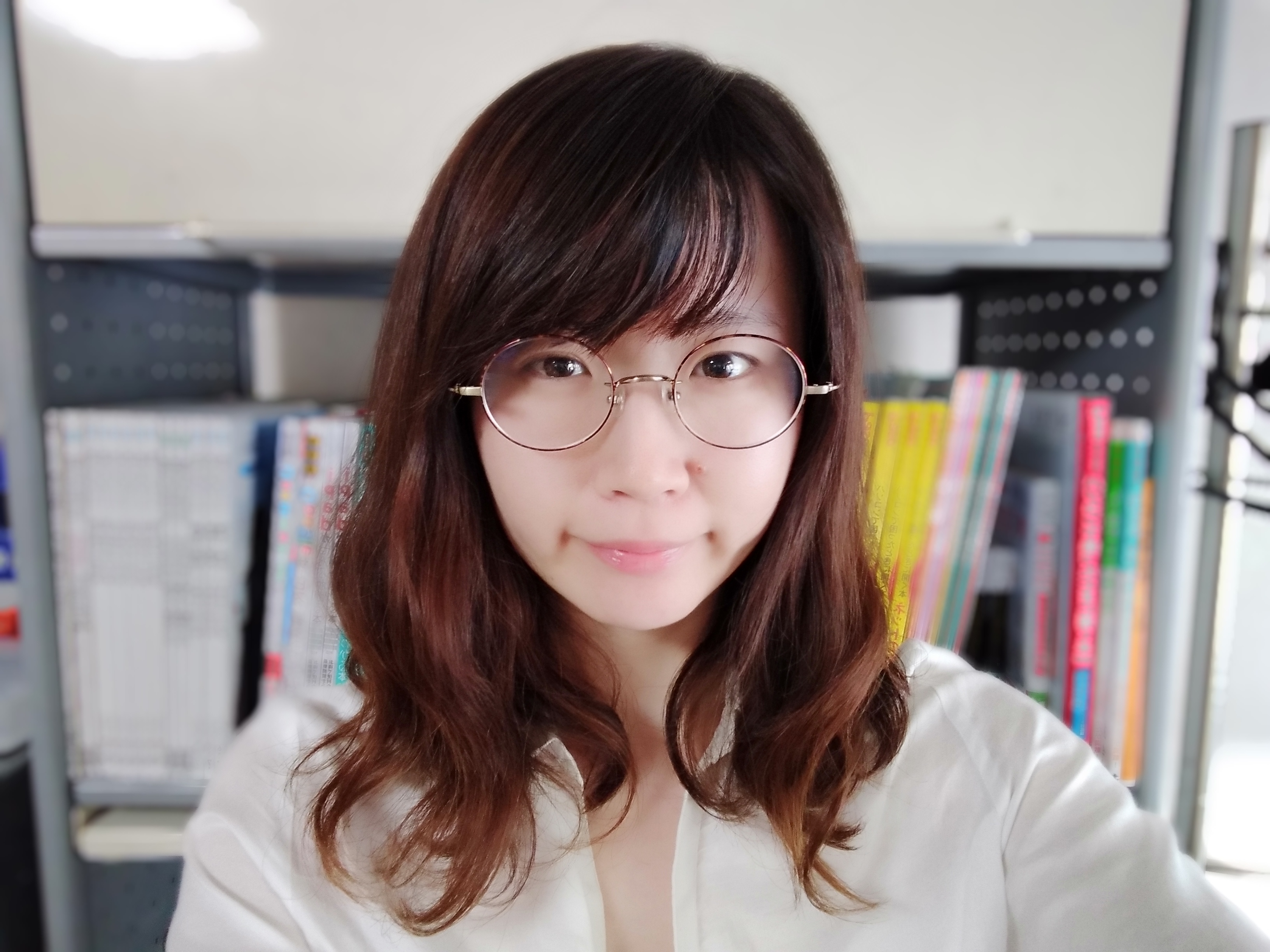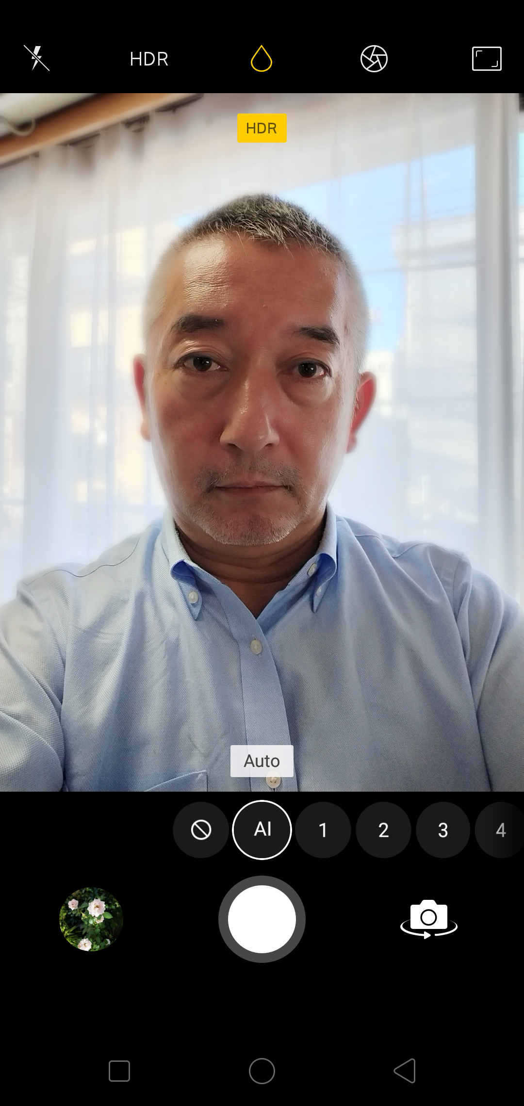 ▲女性スタッフに「A.I.ビューティー」をオンにして撮ってもらった。フロントカメラでも背景をぼかして、人物が際立つポートレートが撮れる