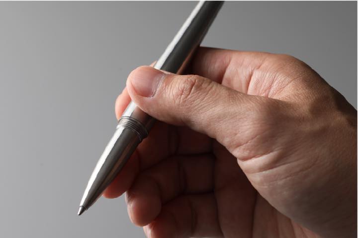 軸の中にハサミ、それも、小さな小さなハサミではなく、通常サイズとほぼ同等の刃渡りをもつハサミを内蔵しています。それでいて、「シザーペン mininch ミニンチ」の全長は140.8mm、直径は13.8mmと、通常のペンと変わらないサイズを実現。いつもの通り、胸ポケットやペンケースに収納して携帯できます。