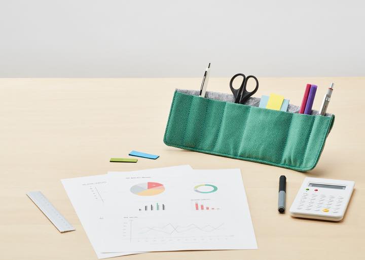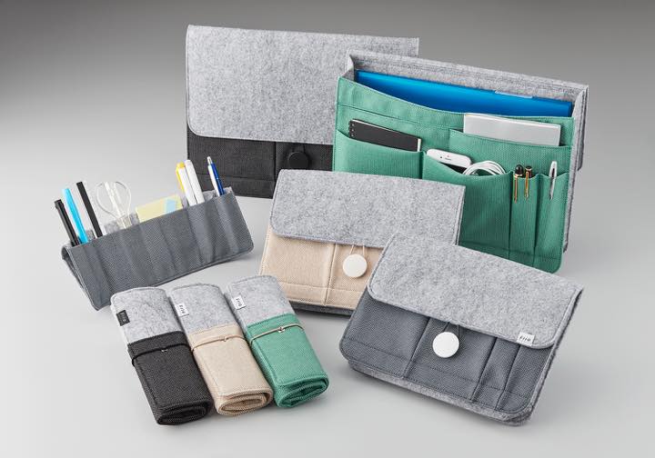 そこで誕生した「フリオ」は、移動の際にビジネスツールをひとまとめにして持ち歩け、使用時には製品自体が自立して、デスク上で場所を取らないバッグとペンケースの新アイテムシリーズになります。