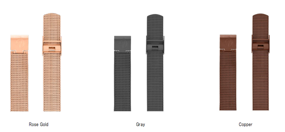 ダークカラーのストラップを選んでビジネス用にしたり、色味を選んでカジュアルダウンしたり、より自分好みに近づけられるのが嬉しいですね。さらに今回、日本だけの特別デザインも登場。幾何学模様のテキスタイルをラバーストラップに配したデザインで、限定200本です。