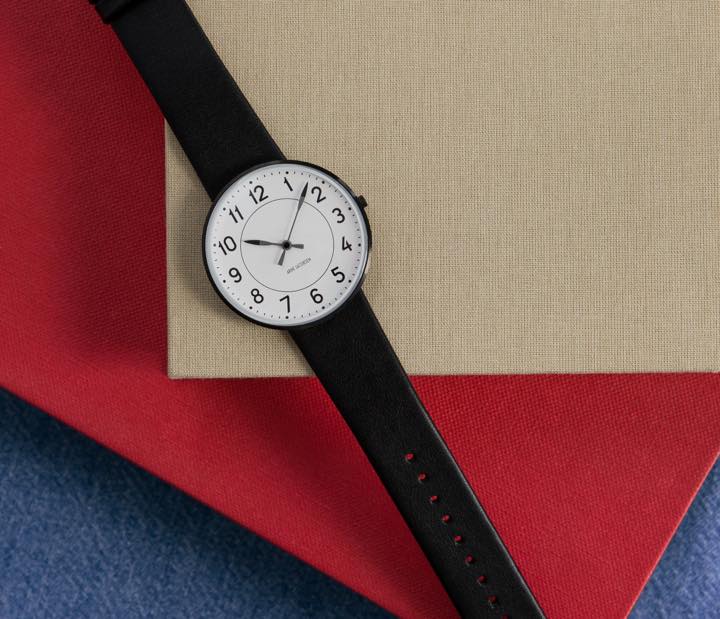 時刻が見やすく、デンマーク国内の駅舎でも使用されている「ステーション」。レザーの黒ストラップならより実用的に、メッシュの赤ストラップならモダンに、シルバーならシャープなデザインに、とストラップによってさまざまな表情に変わります。