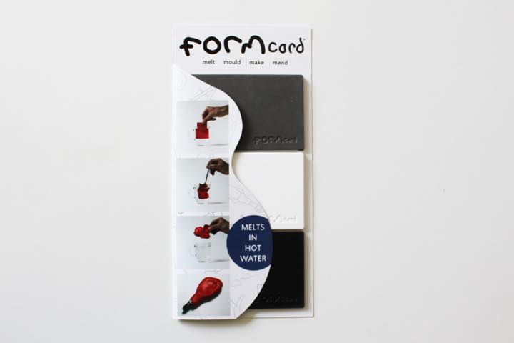 グローバルアジアパートナーズ社が販売している「FORMcard(フォームカード)」(1580円)は、バイオプラスチックでできたカード状の素材。約60度のお湯で温めると柔らかくなり、冷えると硬く固まるという特性。しかも、一度冷やして固まった後でも再び温めることで柔らかさを取り戻すため、形状を整え直したり、別のものに使用したりと、アレンジや転用、再利用が自由自在。非常に使い勝手の良い性質を持っています。