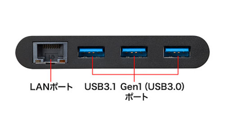 >> サンワサプライ「LANポート付きUSB Type-Cハブ」