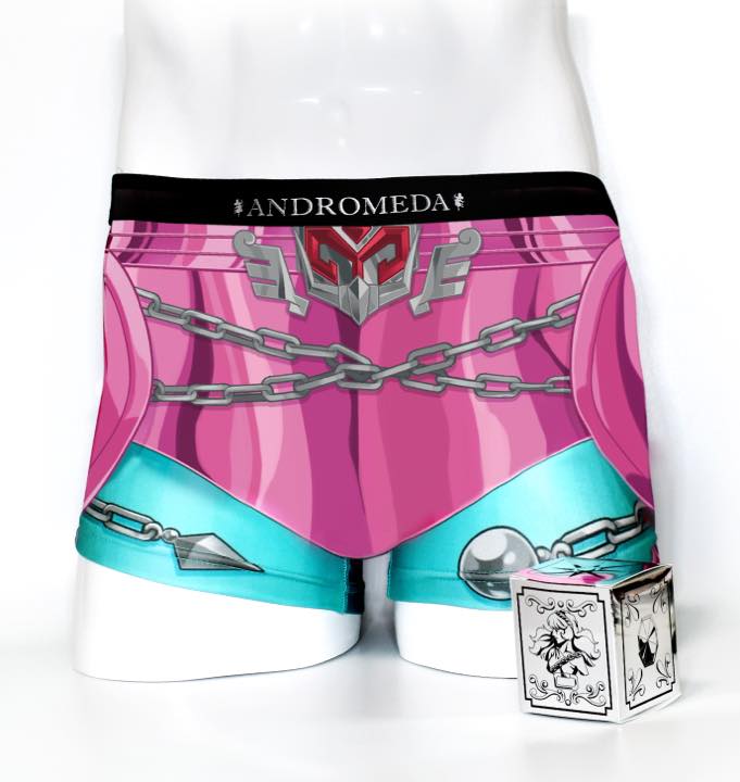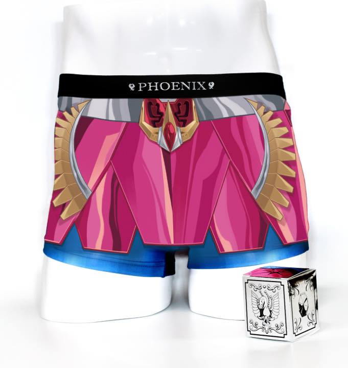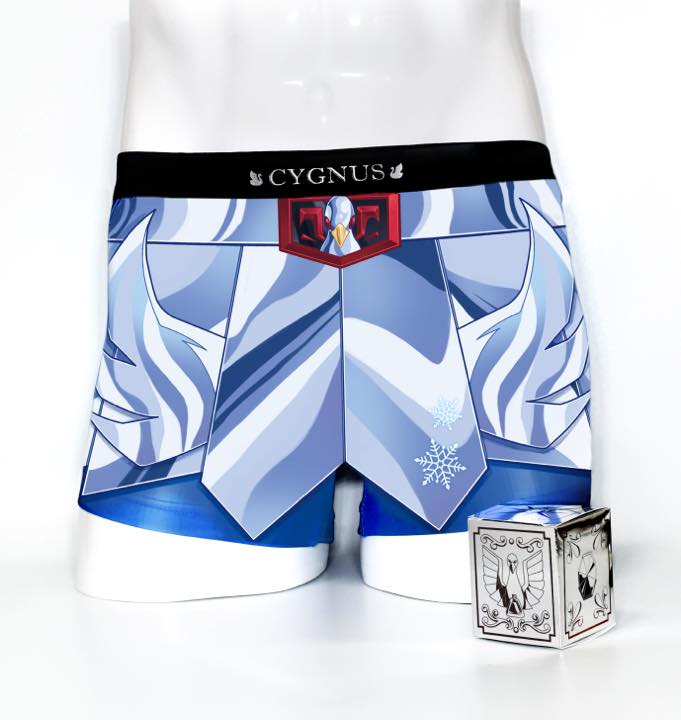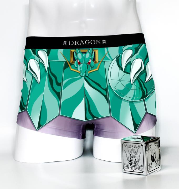 それぞれの聖衣のデザインを、パンツにもそのままにプリント。商品箱が、聖衣を収納するボックスになっているのも一興! 5種がコンプリートされたセットタイプ(1万3800円)もおすすめですよ。