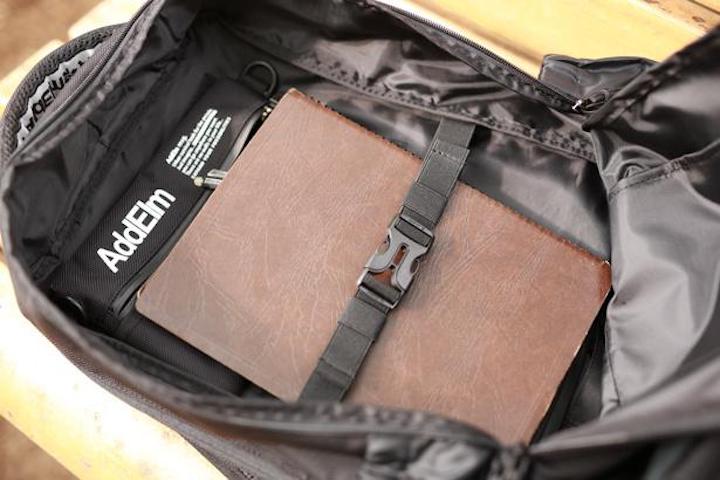 さらに、上部のハンドルにもヒミツが隠されていて、先端スポーツテクノロジーから生まれた「AddElmテープ」を裏に配置することにより、バックパックを手持ちしたときにも不思議と重さを感じにくい効果があるのだとか。