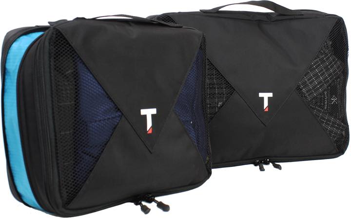サイズはSとLの2種類。もちろん、この形にも理由があり、組み合わせることで市販のスーツケースにうまく入るようになっています。ファスナーをグルっと閉めてポンとスーツケースに入れるだけで見た目も完璧なパッキングになるんですね。