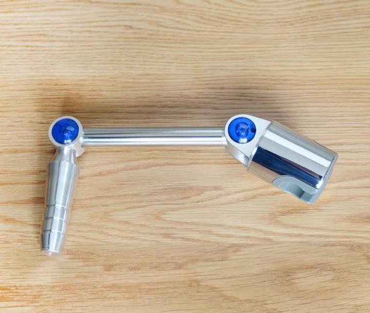 取り付け方は受け口に差し込むだけと実に簡単。面倒な工事や工具は必要ありません。気になるサイズは275mm(棒部分200mm/差込ネック部分118mm)重量300g。30度ずつ角度調整が可能。