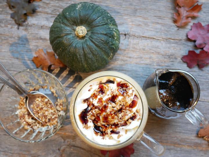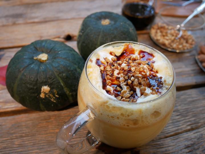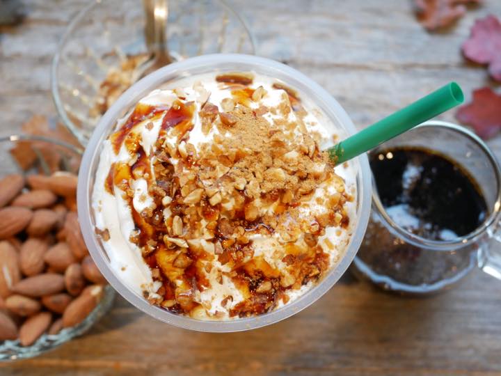 また、カップの中にもトッピングにもたっぷり使われたキャンディーアーモンドが味のアクセントになっています。ストローで飲んだ瞬間にカリカリ、ザクザクとした食感が味わえるのが楽しいですね。アーモンドの香ばしさとほろ苦さが、カボチャの甘みをより引き立てています。