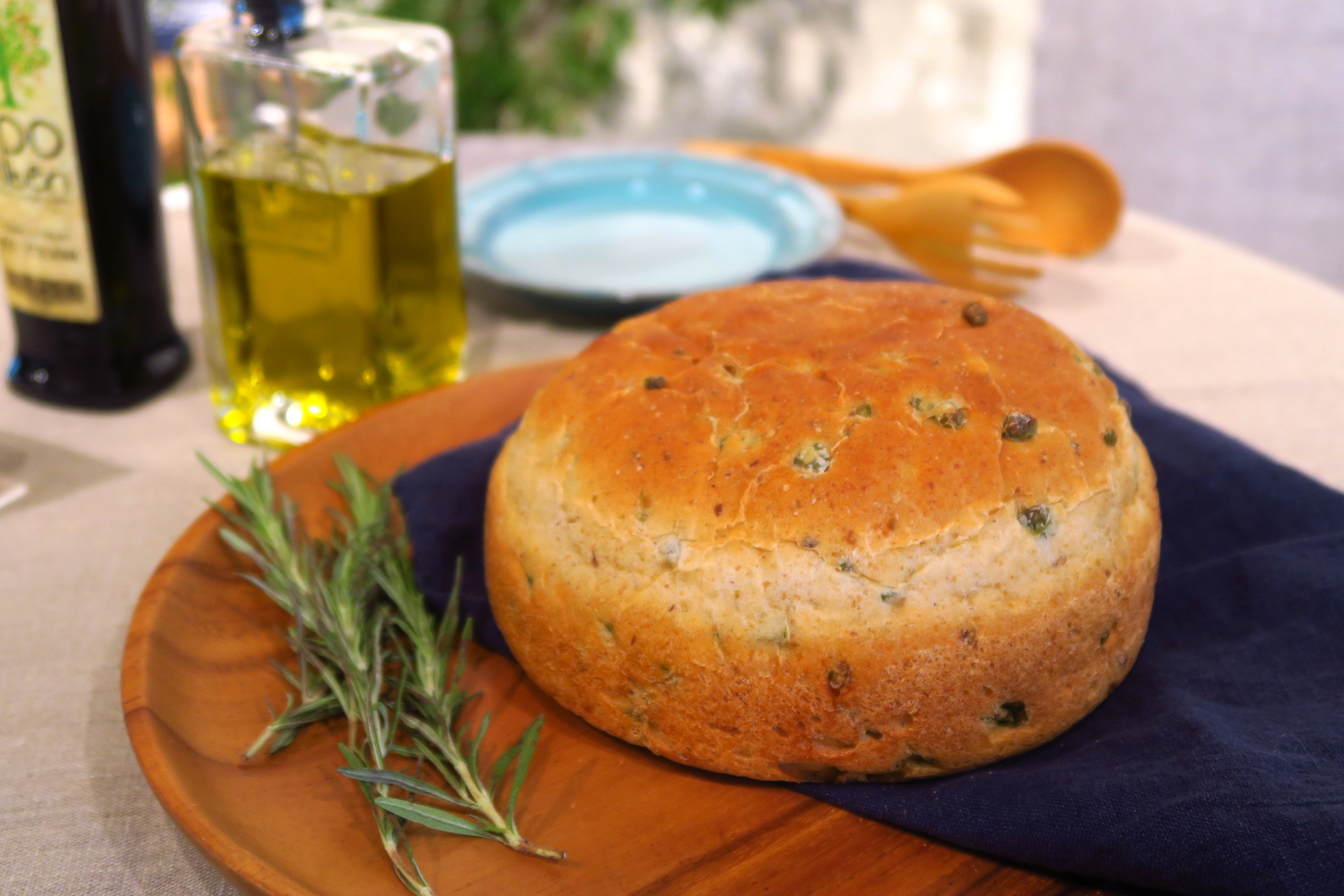 ▲オリーブパンが完成。ほかにも、ライ麦パン、パン・ド・カンパーニュくるみパンをはじめ、ジャムやケーキも自動で作れる
