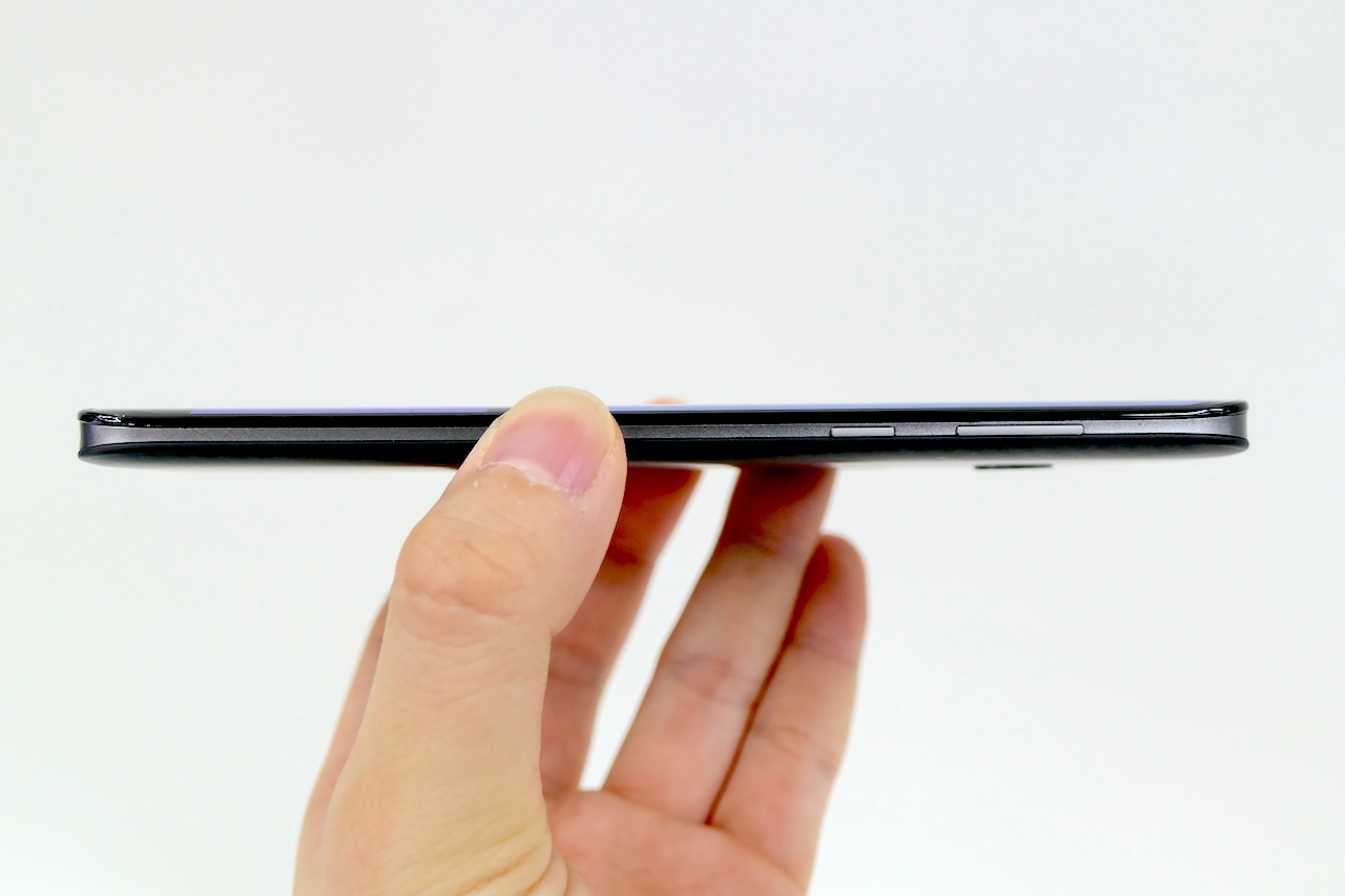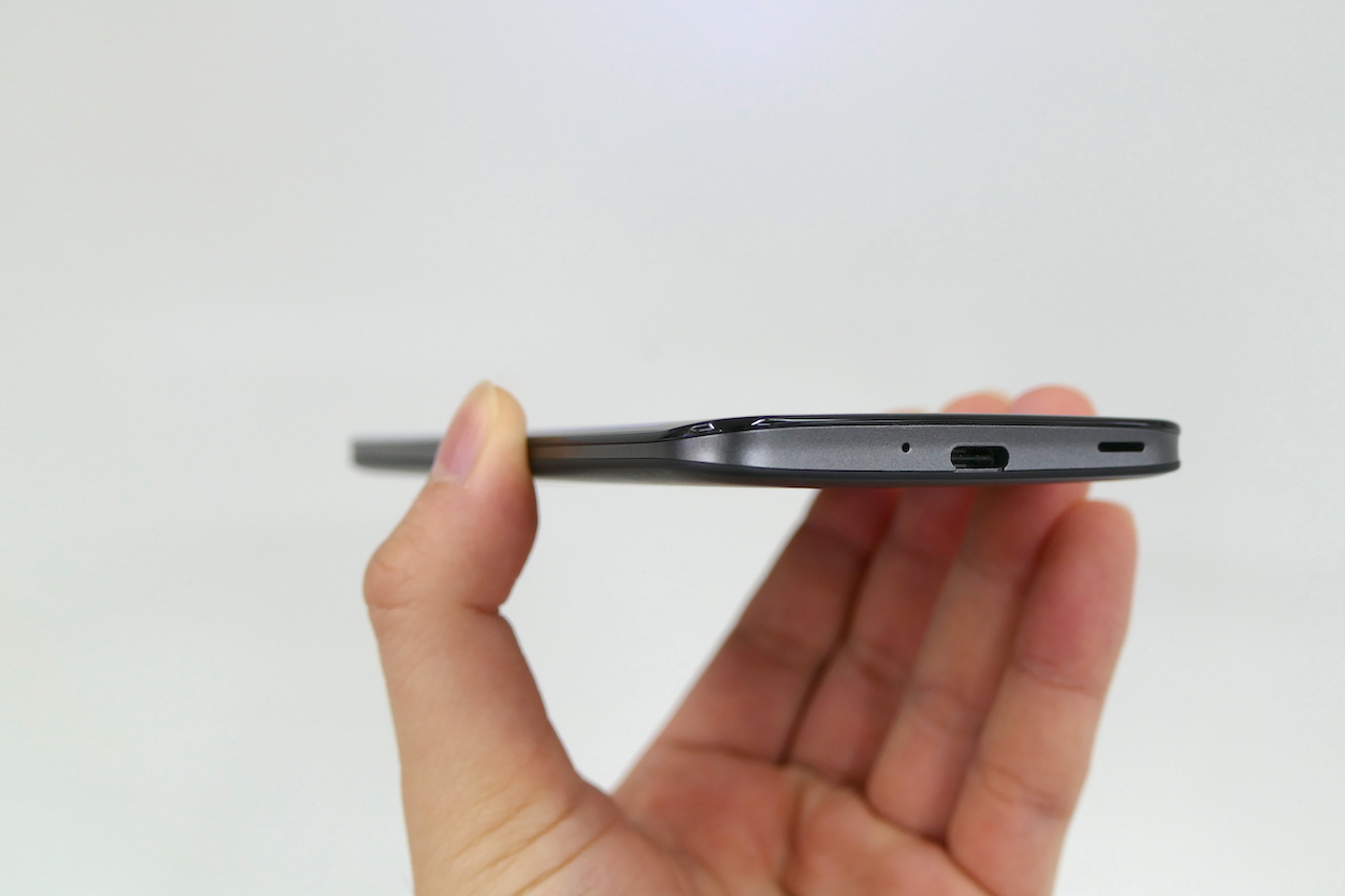 背面から側面にかけてボディにはアルミ素材を使用。側面にあった角は緩やかになり、より手にフィットする印象を受けました。