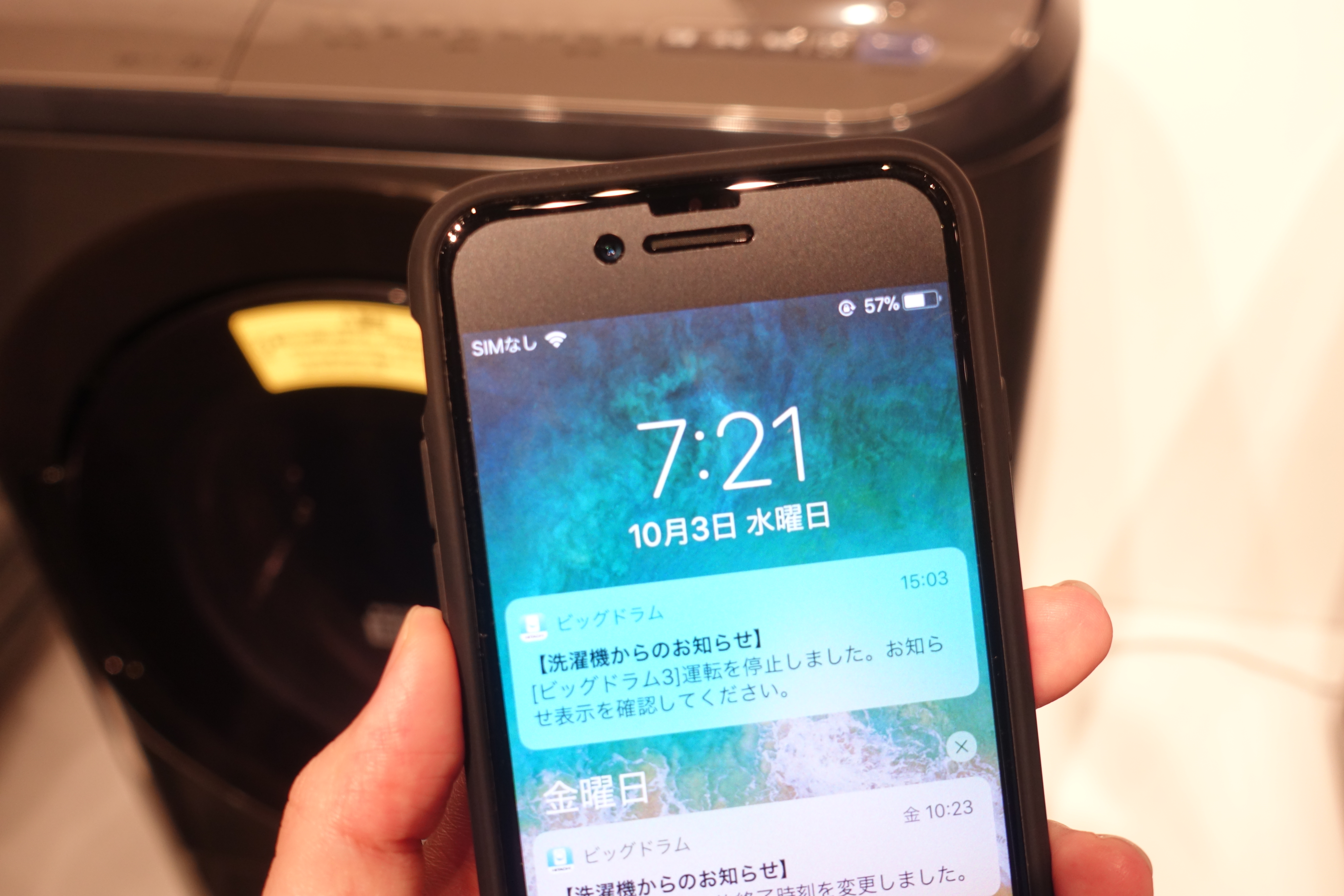 「ドラム式洗濯乾燥機 ビッグドラム BD-NX120C」は、スマホとの連携に対応する“コネクテッド家電”。スマホ専用のアプリから運転状況の確認や、遠隔操作などが可能です。想定発売価格は36万円(税別、以下同)前後になります。