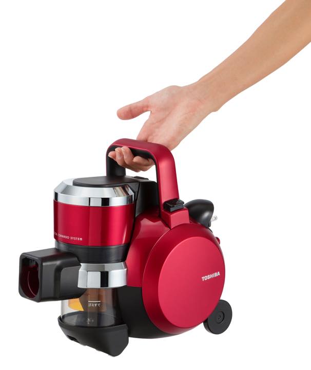 東芝ライフスタイルの「TOR NEO V(トルネオ ヴイ)」から登場するのは、フィルターレスサイクロン式クリーナー3種(11月上旬発売予定)。見た目はごく普通の掃除機ですが、大きな特徴は吸い込んだゴミを圧縮してくれること。従来機種でも約1/5に圧縮してくれるのですが、それが約1/7にギュギュっと進化! ゴミ捨てがさらにラクになります。