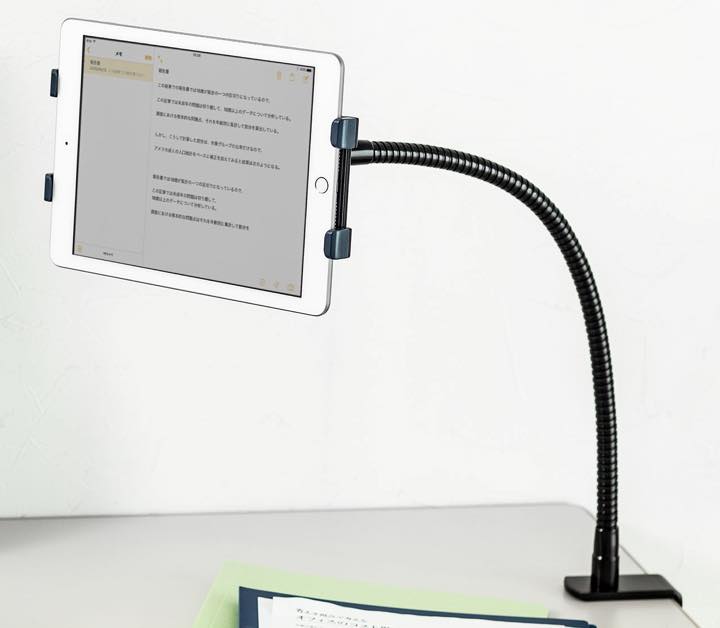 サンワサプライの「iPad・タブレット寝ながらスタンド」(5980円/税込)は、ベッドに取り付ければ、寝ながらiPadやタブレットを操作ができ、机に設置すればデスク上での使用が可能なアームスタンド。7~13インチのiPad、ならびにタブレット(対応タブレット幅200~240mm、総耐荷重1kg、厚み10mmまで)を、伸縮式のホルダーでがっちりサポートします(iPad Pro 10.5インチは非対応)。