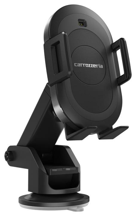 11月発売予定の「SDA-SC500」(オープン価格)は、電動ホールド機構とワイヤレス充電機能を備えた車載用スマートフォンクレイドルです。スマートフォンをホルダー部に置くと、光学センサーが反応して固定バーが作動(最大8.5cm幅まで対応)。本体背面部の静電タッチセンサーに触れればホールドが解除され、脱着ともに片手で完了する仕様になっています。