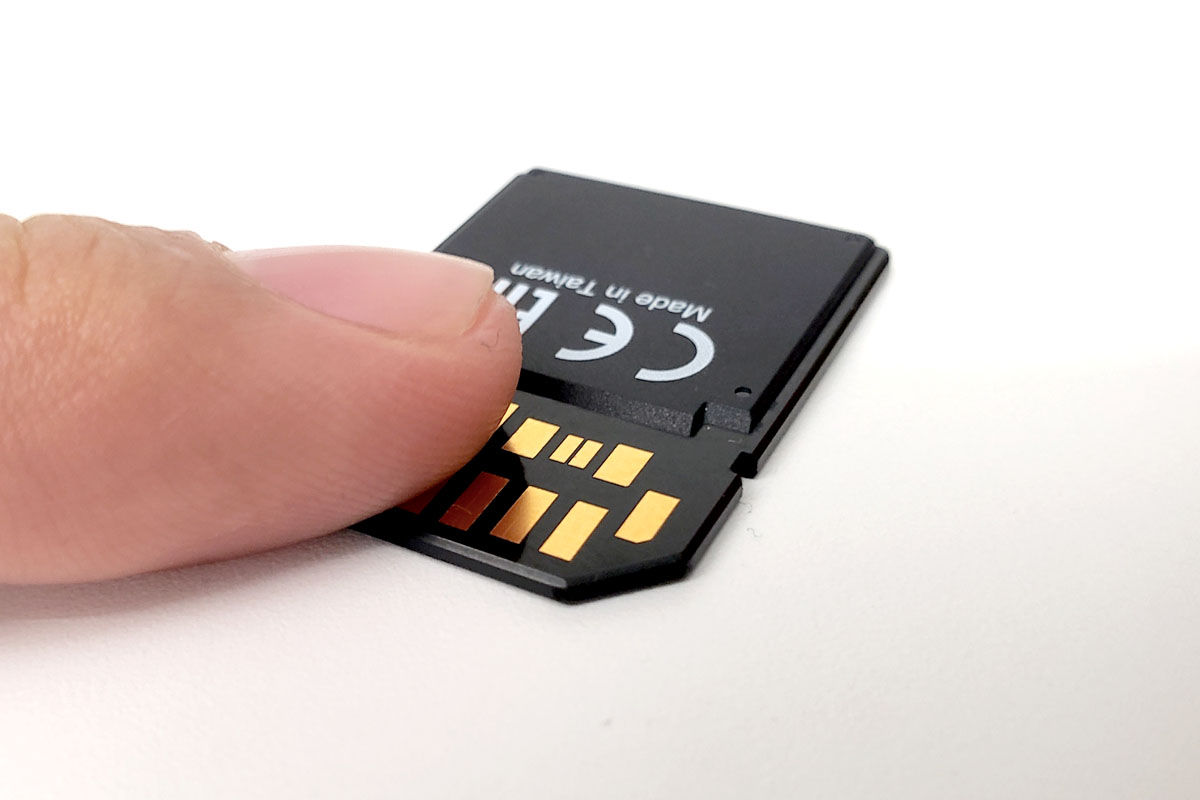 ちょっとSDカードを思い出してみてください。側面にデータ消去を防ぐプロテクトスイッチがあり、むき出しの端子部分には仕切りのようなリブが付いています。そして指でつまんでちょっと力を入れると、全体がたわみます。実はこの3点が、良く破損する箇所なんです。