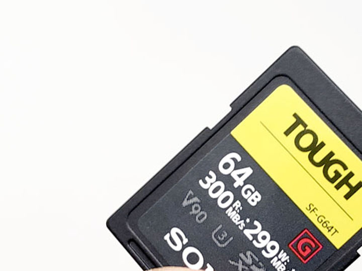 しかもベースとなるメモリは、世界最速(2018年9月現在フルサイズSDメモリーカードにおいて)を誇る同社の「SF-Gシリーズ」。最大過去込みは299MB/秒、最大読み出しは300MB/秒です。そんな世界最速におそらく世界最高のタフさを備えた最強ともいえるSDメモリーカード、それが「SF-Gシリーズ タフ仕様」です。