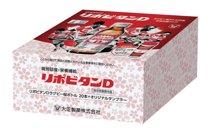 さらに、Amazon.co.jpおよび大正製薬ダイレクト楽天市場店では、今年5月に発売した「リポビタンD ラグビー桜ボトル」20本(10本入り×2箱)と、オリジナルタンブラーがセットになった限定商品「リポビタンD ラグビー日本代表応援パック」を発売中。オリジナルタンブラーは、ラグビー日本代表のチームカラーである赤と白をベースに桜エンブレムをあしらった特別デザイン。ラグビーの熱烈なファンであれば見逃せないアイテムですね。