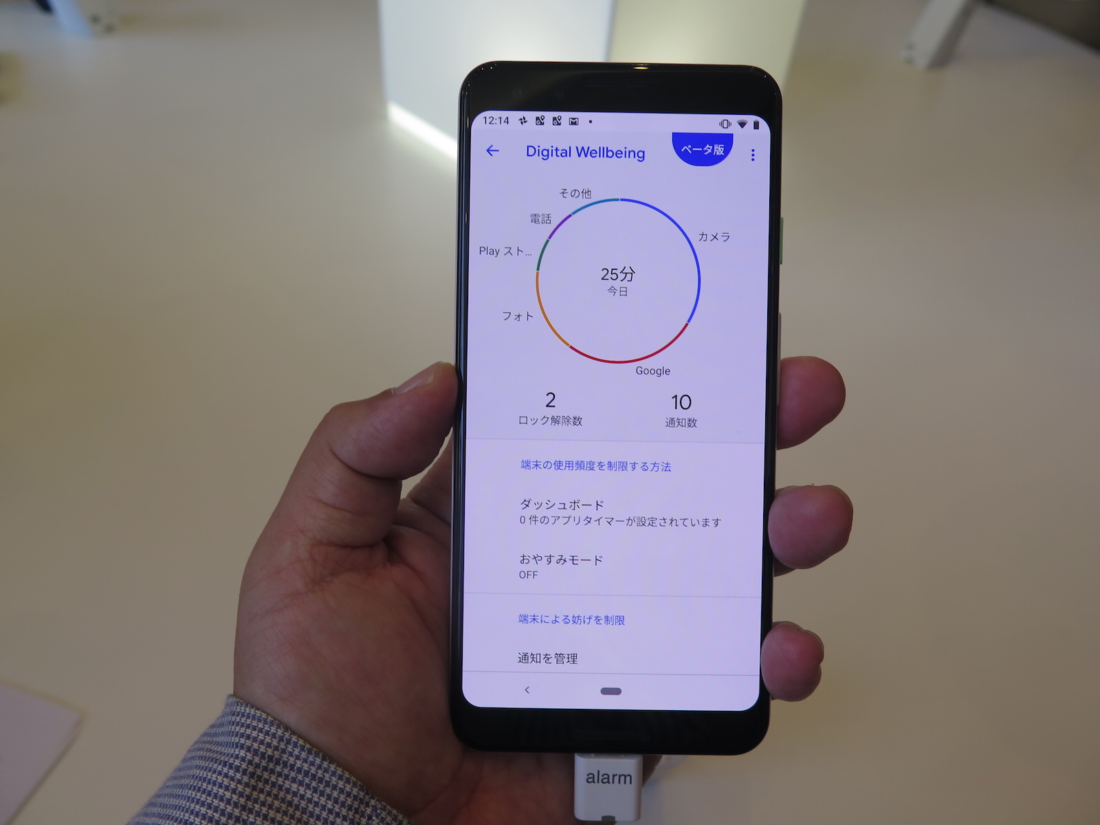 ▲スマホの利用状況を把握し、使い過ぎ対策を講じられる「Digital Wellbeing」機能を初搭載