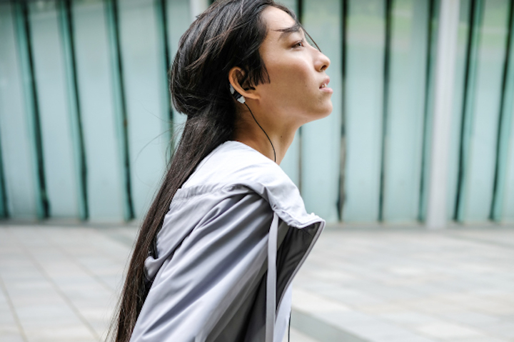 そこで耳の後ろ部分をスイートスポットと捉え、新たに発案したのが今回の新モデル。初代製品が耳たぶに直接取り付けるクリップタイプの形状だったのに対し、新モデルでは耳の後ろを振動させるイヤーフック式を採用。骨伝導デバイスが耳の後ろで振動することで、より自然で立体的なサウンドリスニングを楽しめるイヤホンを目指しました。