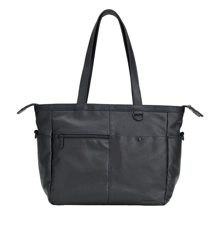 ビジネスバッグとしても使い勝手の良さそうな「トートバッグCCB-TB10」(9980円/税別)、実は取り外し可能な巾着タイプのクッション付きカメラ・レンズ収納バッグが付属しており、カメラバッグとして使えます。下部には「Canon」のロゴがさりげなく型押しされています。仕事でカメラを常に持ち歩くビジネスパーソンには最適なトートです。