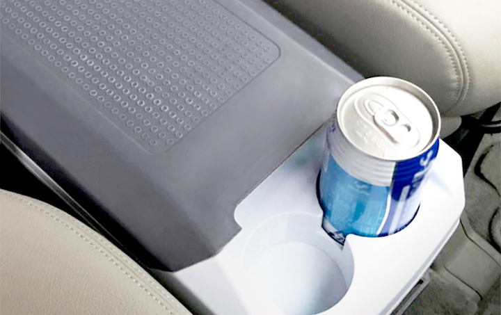 がっちりめのケースの中に500mlのペットボトルや、350ml缶を6本収納可能。ワンボックスカーのリアシートにすっぽり収まる仕様なので、特に車で出かける際にオススメです。
