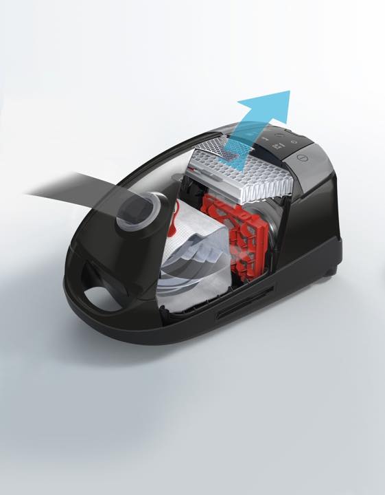その大きな特長は、強い吸引力と圧倒的にキレイな排気です。「9層のハイクリーン3D ダストバッグ」「モーター保護フィルター」「排気フィルター」と11層にも重なった独自のエアクリーンフィルターシステムが99.9%以上の微粒子をも徹底的に除去。吸い込む前の空気よりも排気がクリーンになるという驚きの性能です。窓を閉め切っていても快適に掃除ができるので、花粉の季節などに大助かりですね。