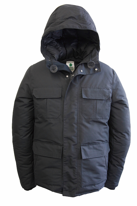 「NYLON DOWN PARKA」(2万9000円/税別)は、表地も裏地もナイロン100%のダウンジャケット。光沢が美しく、60/40の生地を使ったダウンジャケットよりもぐっと軽量です。本体とフードは一体型。こちらも、袖口のゴム、メインファスナーの比翼、3枚剥ぎ立体フードなど、寒さ対策はばっちりです。