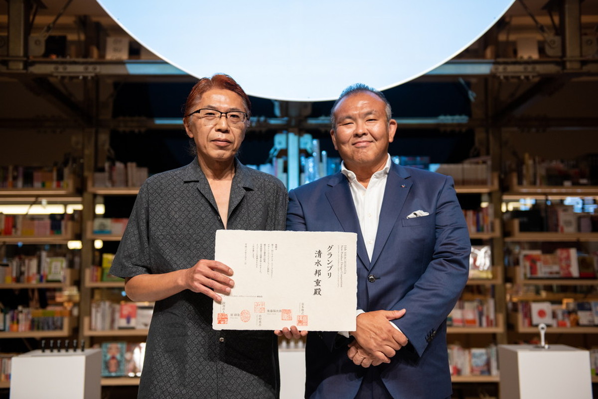 ▲グランプリを獲得した清水邦重さん(写真左)と舟橋正剛社長(写真右)