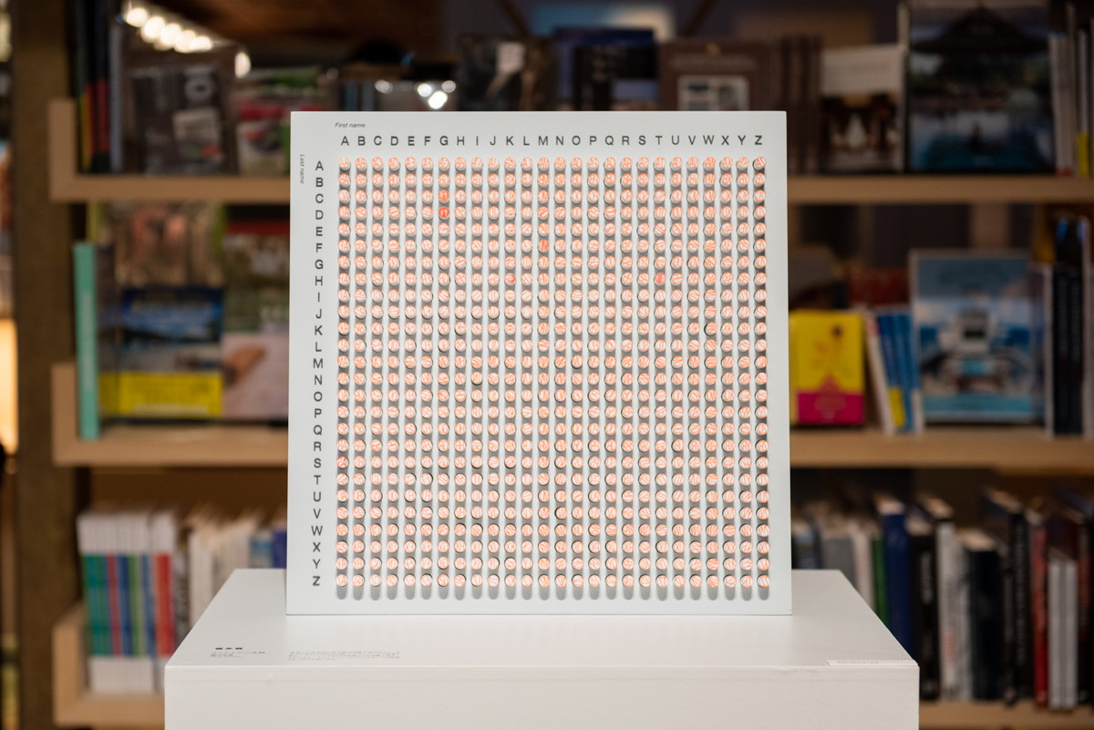 ▲審査員賞 喜多賞 堀川卓哉さんの「イニシャル三文判」。喜多さん曰く「676種類すべて試作したことも説得力につながった」とか