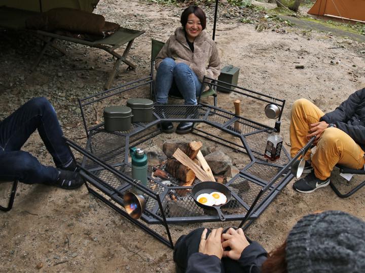 「テキーラワンエイティ」2セットと、別売りの脚「テキーラレッグL」1セット(2脚入り。参考価格:5200円/税別)を追加購入して組み合わせれば、キャンプ用囲炉裏テーブルとしても使えますよ。