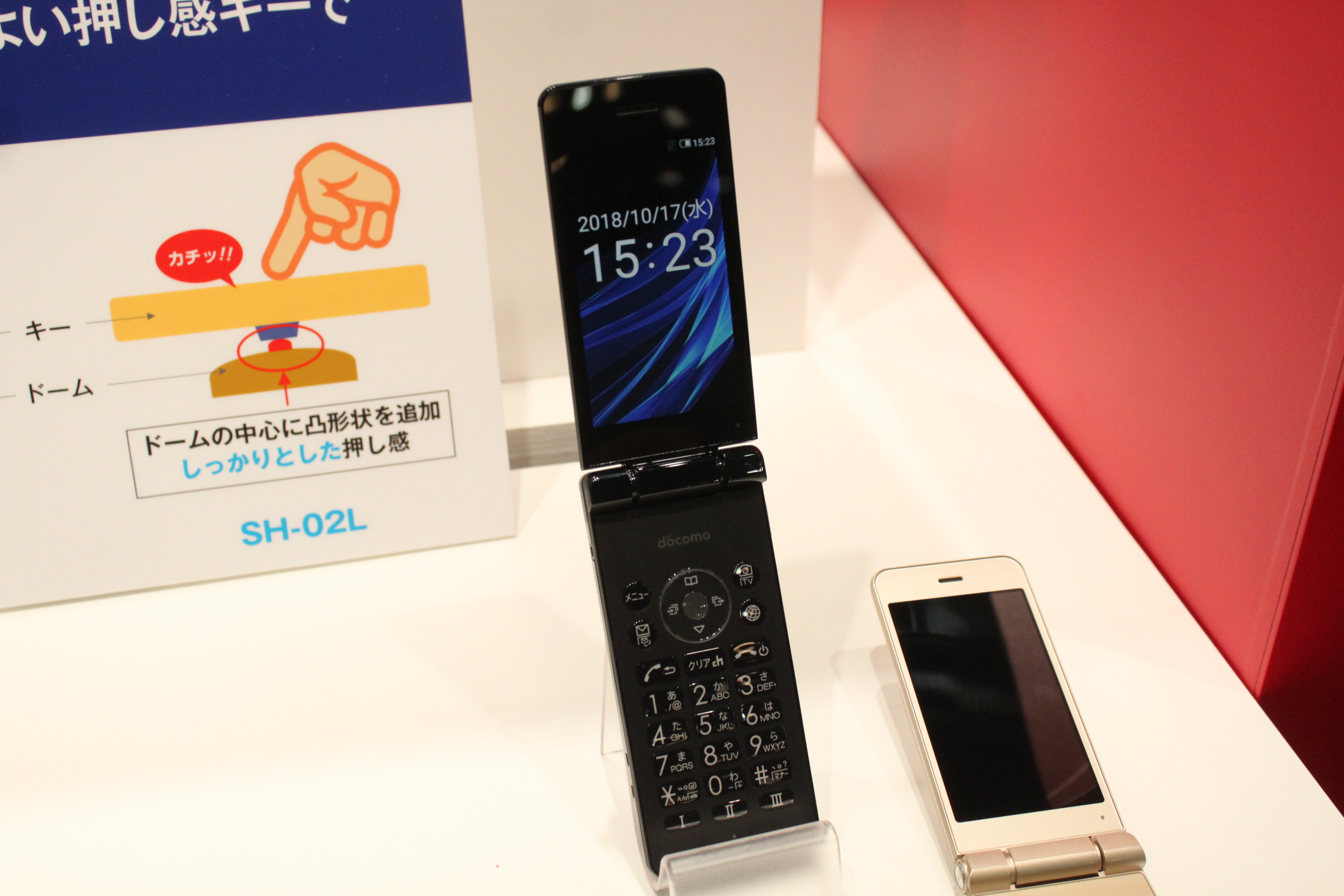 ▲「AQUOS ケータイ SH-02L」展示されていた従来モデルと比べると、キーの「押した感」がより感じられた