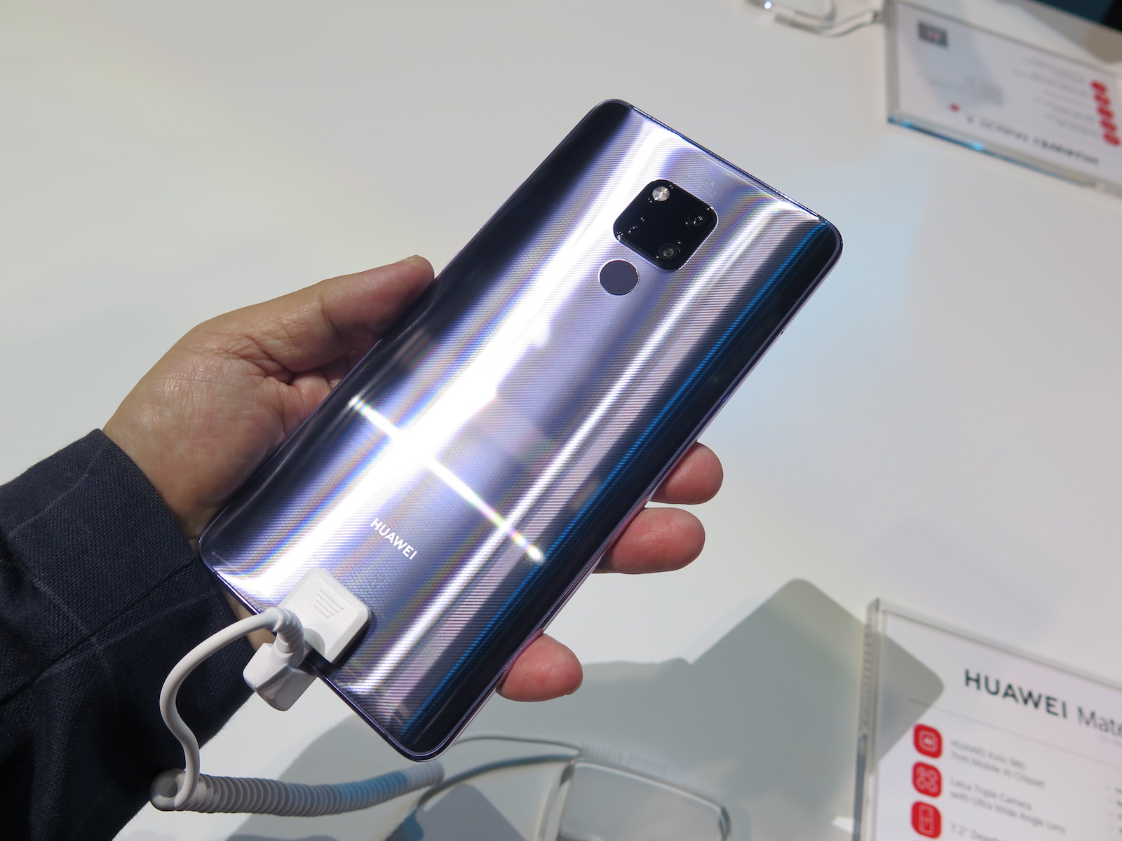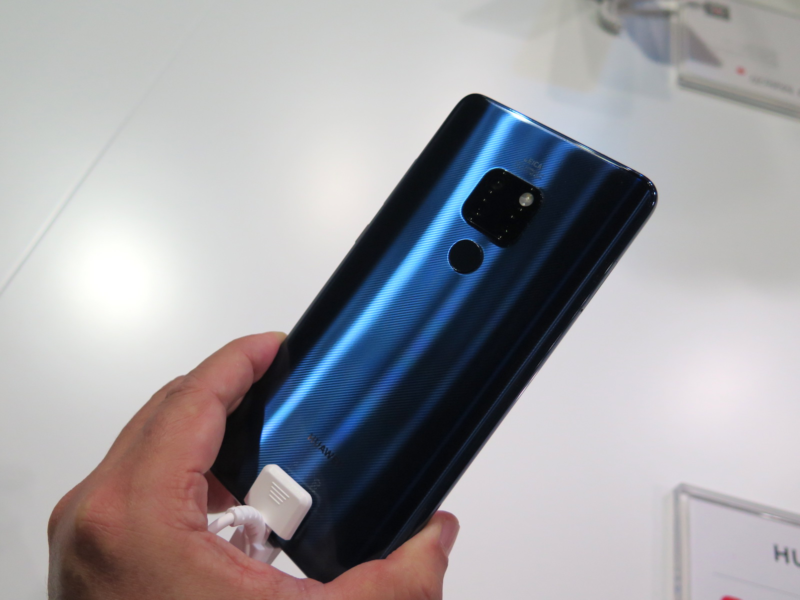 ▲背面には、Mate 20と同じくライカのトリプルレンズカメラと指紋センサーを搭載