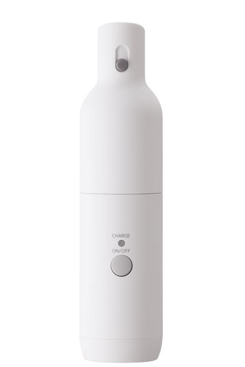 ツインバードからお目見えしたボトル型クリーナー「HC-E205W」(オープン価格)。このクリーナー、すごいのは最近多いハンディ型掃除機の中でもさらに一回りも二回りも小さいペットボトルサイズということ。しかも見た目もオシャレ! 化粧品のようなシンプルデザインのクリーナーです。