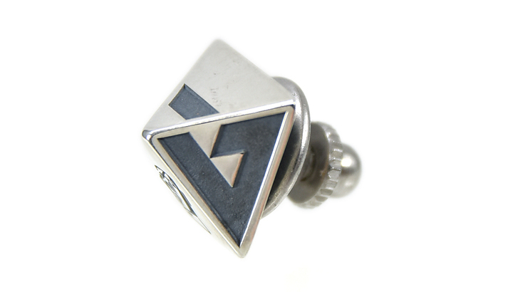 「社章をつけています」という顔して着けていたら、意外とビジネススーツでもいけるかも!? 価格1万2960円。サイズは、トップ約12×12×4mm。