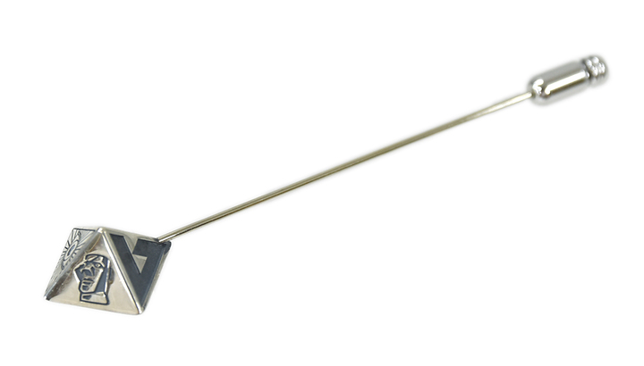 スーツの襟もとのボタンホールに、ピンで留めるラベルペン。ワンランクアップなおしゃれに!? 価格は1万2960円。サイズは、トップ約12×12×4mm。