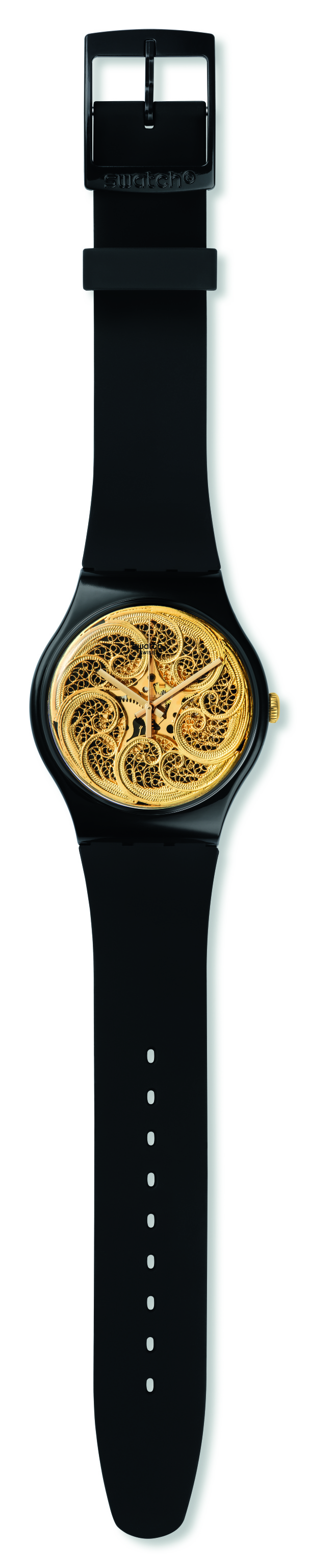ジョアナの描いた緻密な模様を形にしたのは、ポルトガル北部のフィリグリー職人。手作業で金線細工を重ね、それをさらにスウォッチの時計職人がウォッチとして組み立てるという形で、一本一本丁寧に作られた。