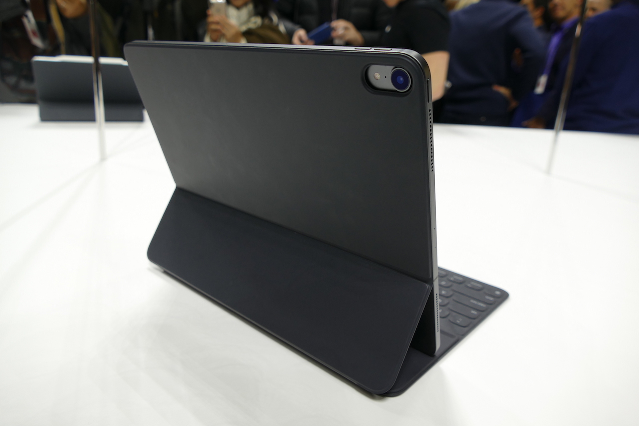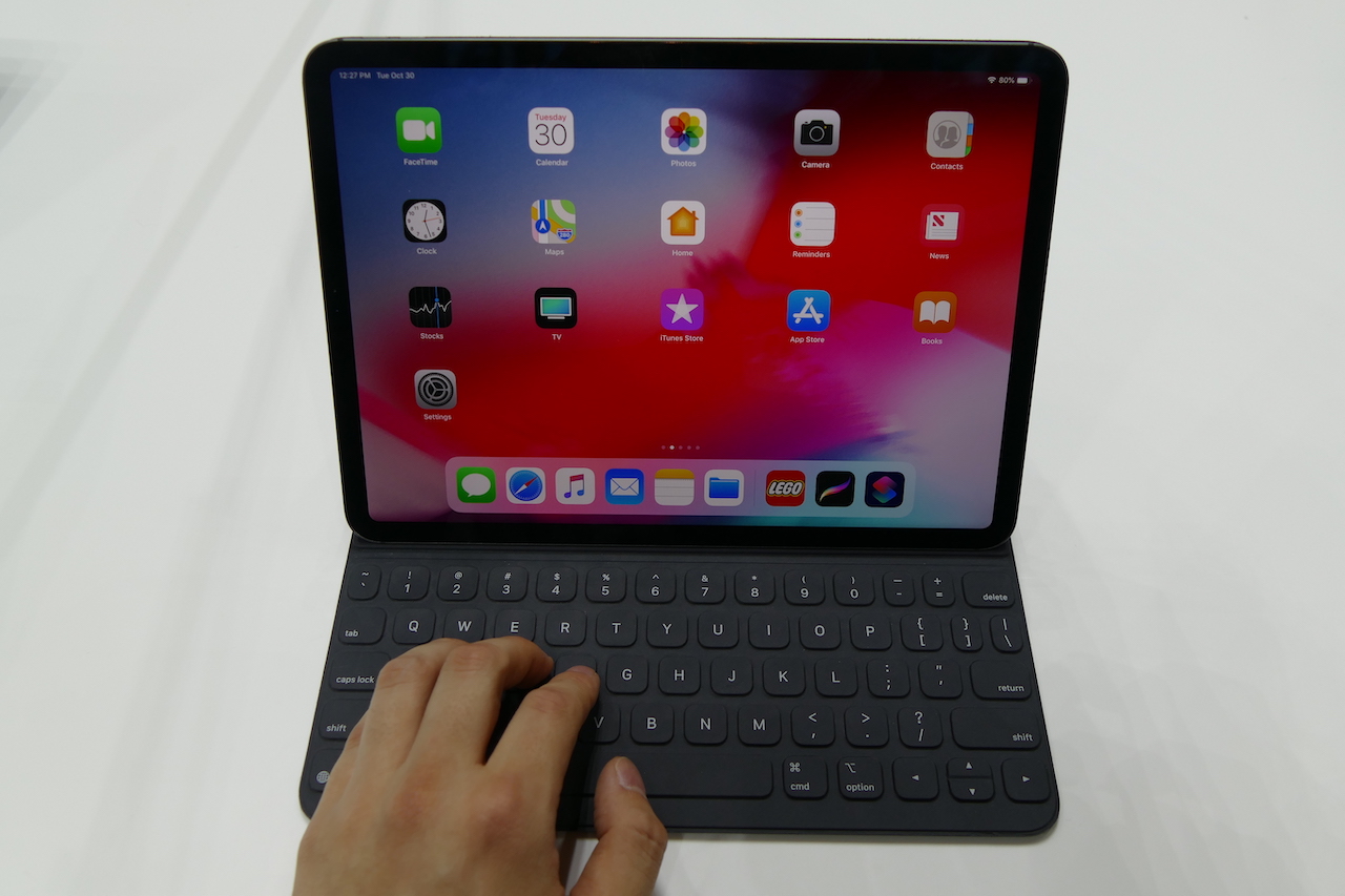 3つ目のポイントは、「Smart Keyboard Folio」が登場したこと。従来のSmart Keyboardは、キーボードのみのアクセサリーでしたが、今回は背面カバーまでが一体になっており、マグネットで固定される仕組みに。