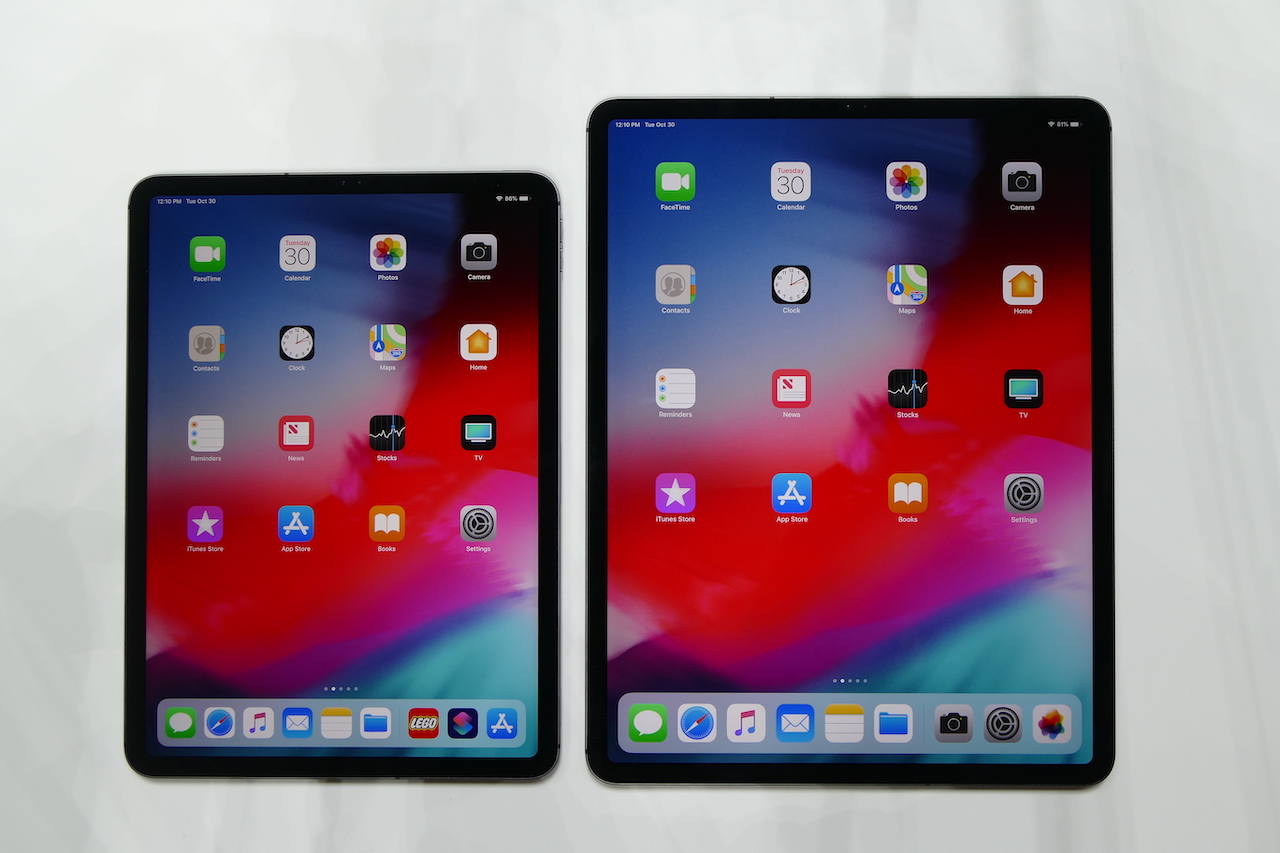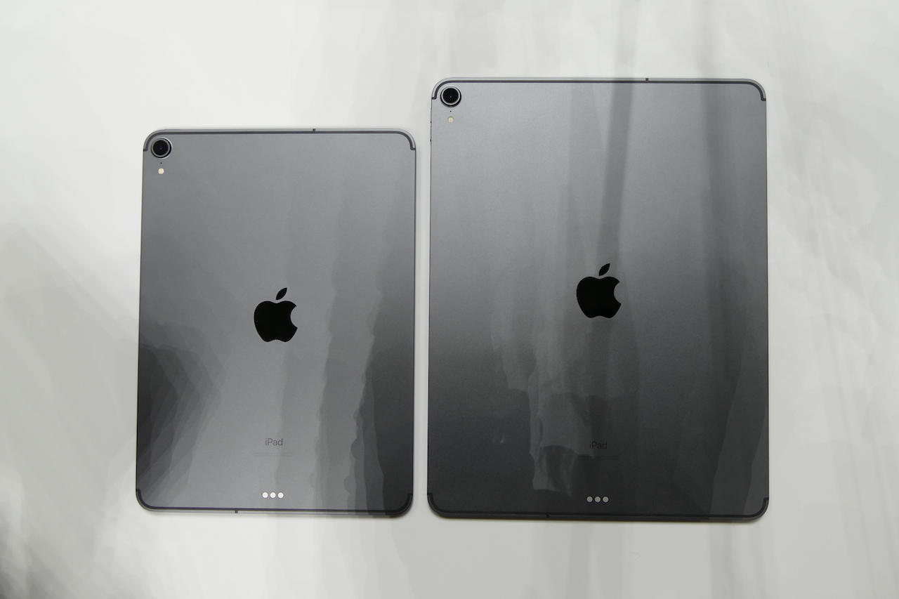 ▲新しいiPad Pro、11インチモデル(左)と12.9インチモデル(右)