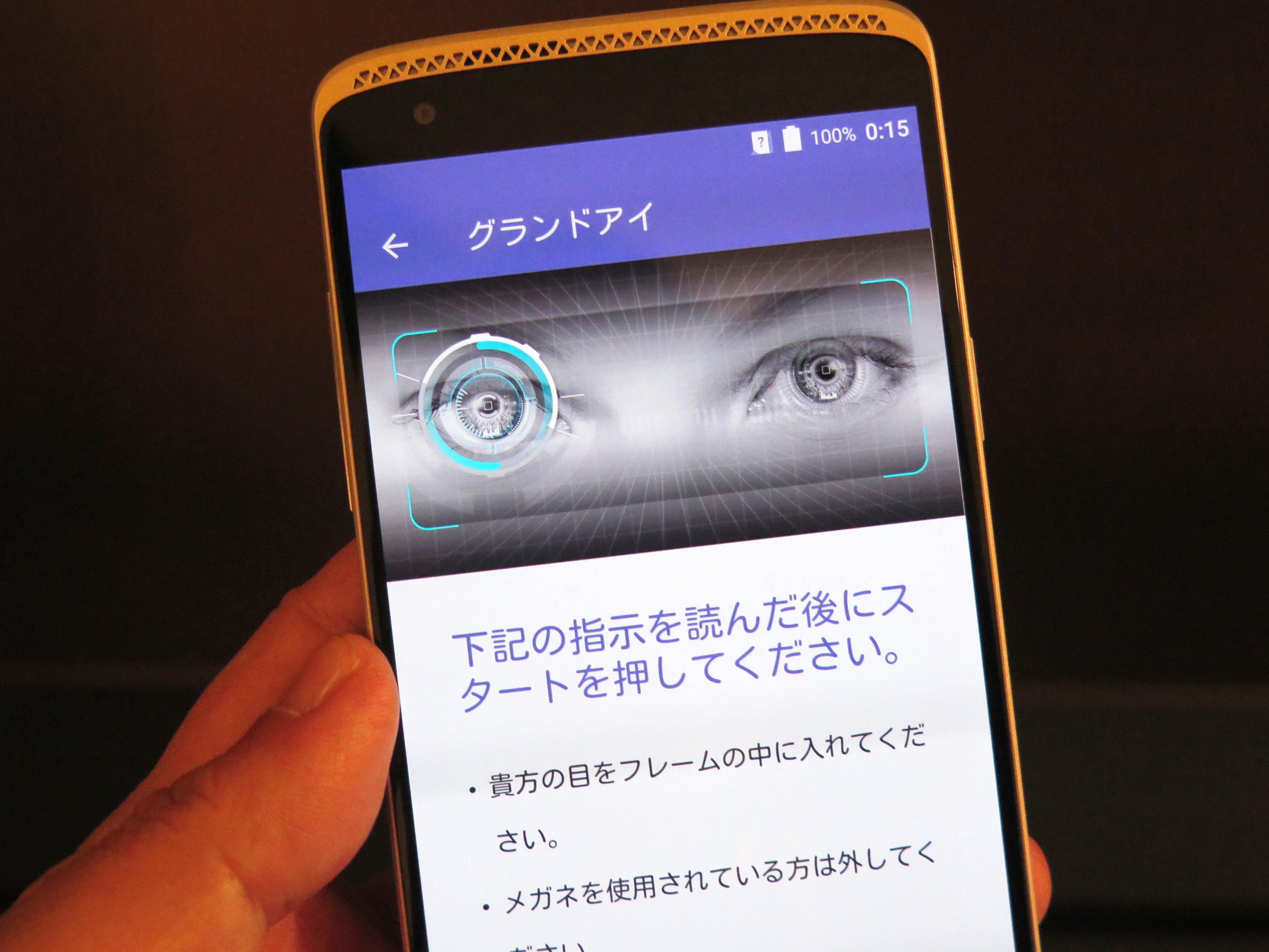 AXON miniの背面には、指紋センサーが搭載されています。加えて、眼の静脈認証と音声認証にも対応。つまり、3種類の生体認証機能を備えているんです。