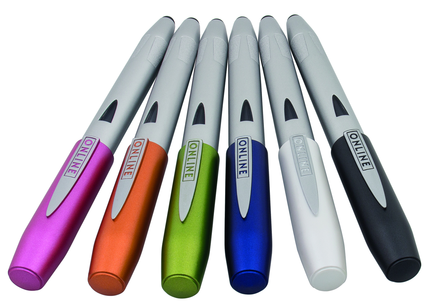 「スウィッチ万年筆」はアルミの本体に導電性ゴムを使用したカラフルでカジュアルなデザイン。